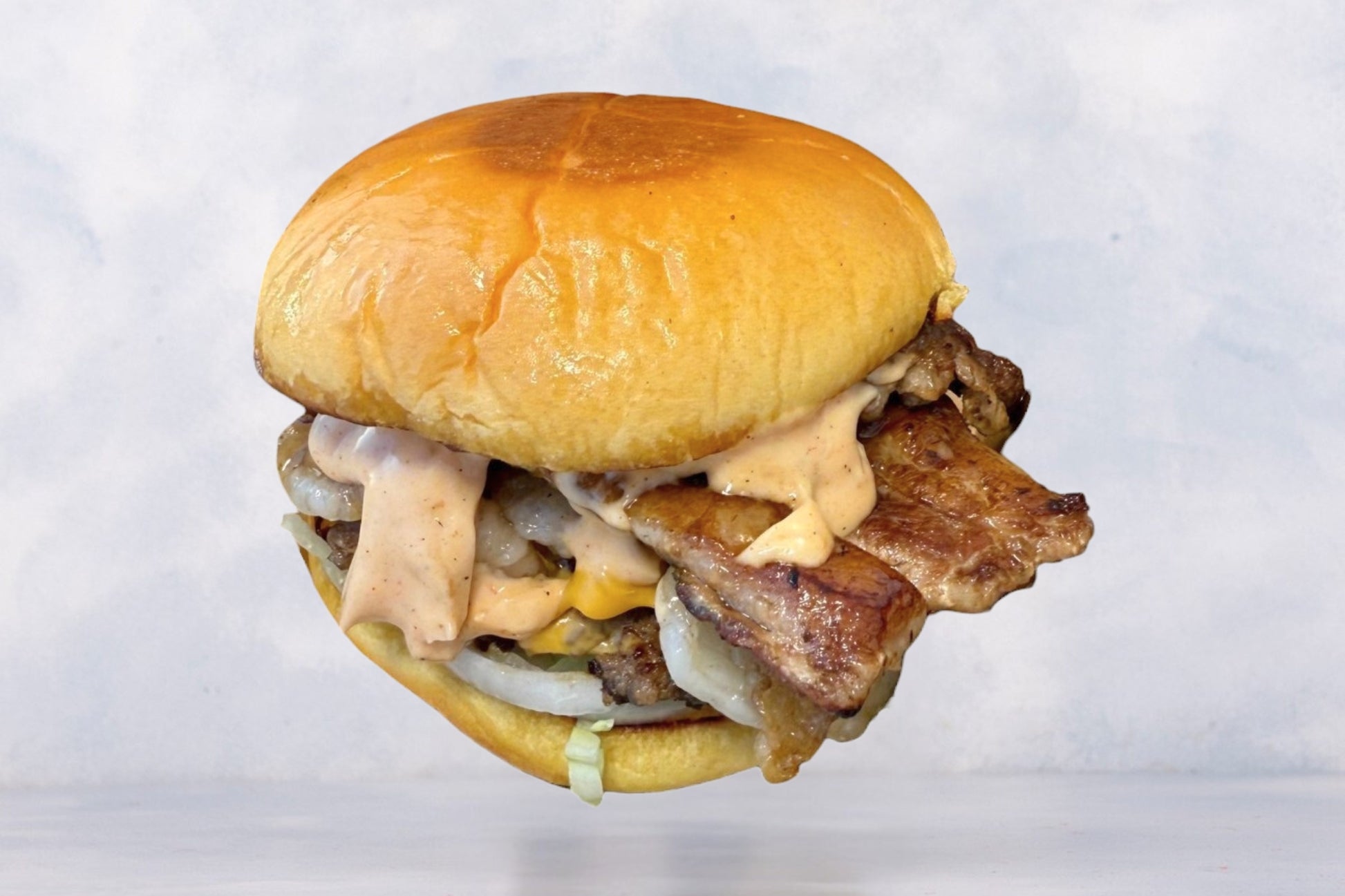 يتكون من شريحة لحم سنام لذيذة، مع شريحة شحم ناعمة من السنام، ويُضاف إليه طماطم، بصل، خس فريش، وجبنة ذائبة. يُقدم مع صوص “حيران الدار” الخاص داخل خبز طري وشهي.